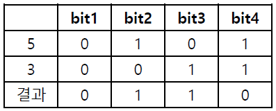 - 두 개의 비트 값이 같으면 0, 다르면 1