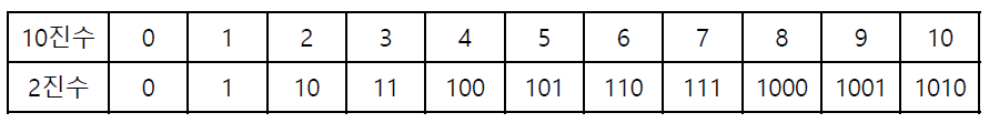 - 2를 기반으로 하는 숫자체계