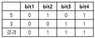 - 두 개의 비트 값 중 하나라도 1이면 결과 1