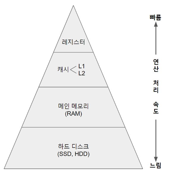 위로 갈수록 빠르고 비싸고, 밑으로 갈수록 느리고 저렴한 저장소라고 할 수 있다.