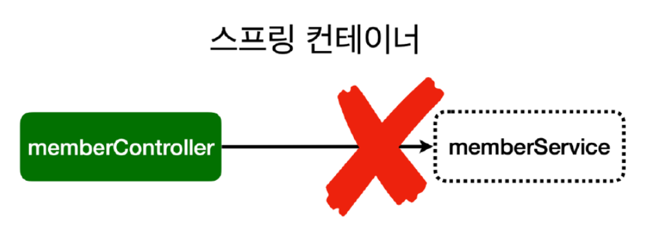 만약 이 상태로 서버를 작동시키면 memberService가 스프링 컨테이너에 스프링 빈으로 등록되어 있지 않기 때문에 오류가 발생할 것이다.