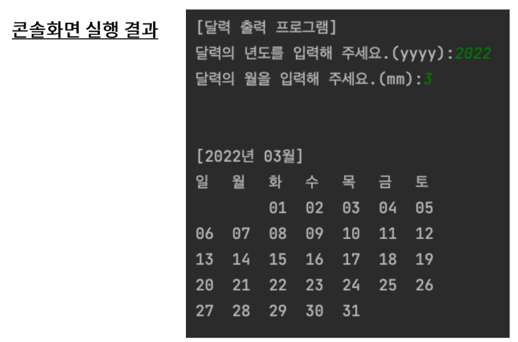 - 수행 목적 : Scanner의 입력함수와 조건문 및 반복문을 통한 달력 계산 로직 작성